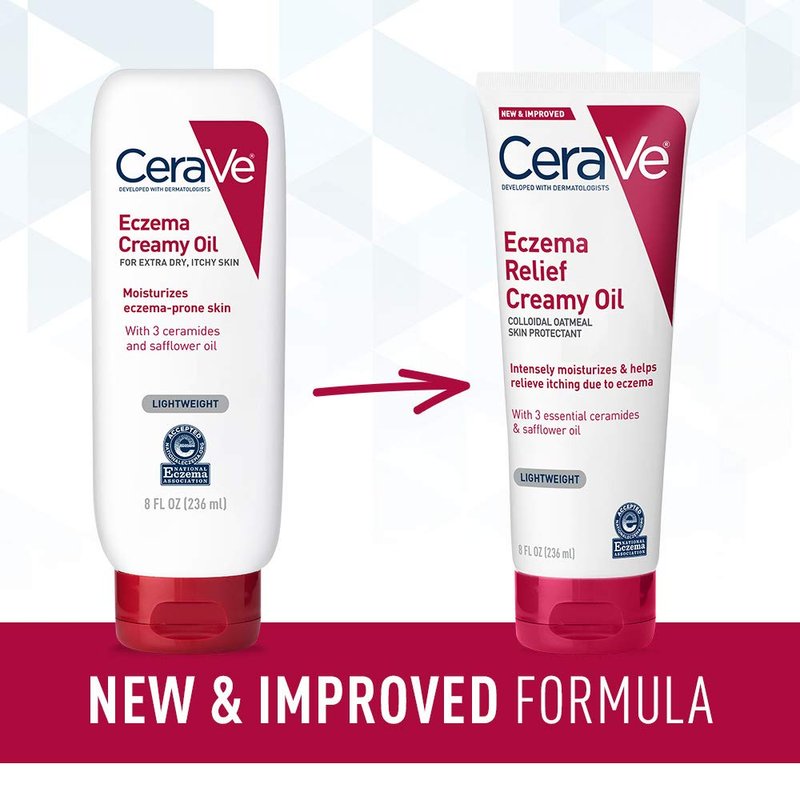 - [ ECZEMA BODY CREAM OIL ] CeraVe Eczema Relief Creamy Oil has a rich, occlusive texture that feels like a combination of a moisturizing cream & a body oil all in one. Once applied, it is absorbed quickly, leaving skin feeling smooth & hydrated, non greasy