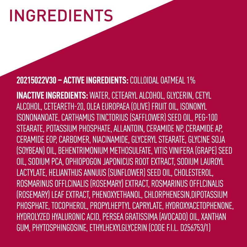 - [ DRY SKIN RELIEF ] Contains Colloidal Oatmeal to help relieve symptoms of eczema, such as dry, itchy, scaly patches of skin. Fast-absorbing formula with Safflower Oil moisturizes skin while hyaluronic acid helps to hydrate skin & retain natural moisture