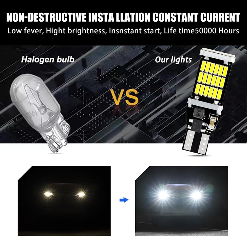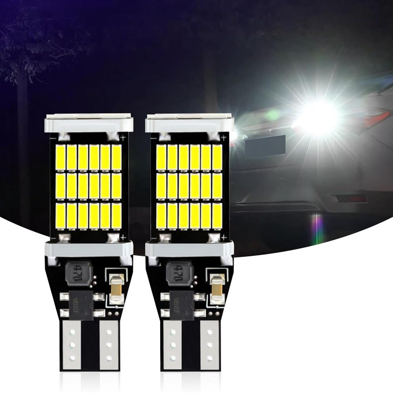 - Application: 360 degree lighting angle, wide compatibility of all cars, trucks, trailers, rv, etc. Perfect upgrading stock dim halogen T15 backup reverse lights for a brighter visual and safer driving. Energy-saving, low temperature, long lasting. Can be used as a turn signal, tail brake light, reverse backup light, etc.
