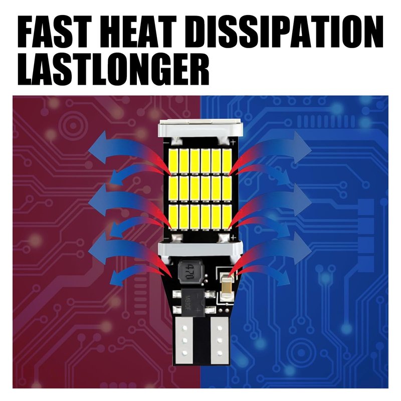 - Package Contents: There are four 4 car LED bulbs in the package, model T15 4014 45SMD, each bulb has 45pcs 4014 high brightness LED chips, size 41mm x 13mm/1.6" x 0.5", with 4 colors for your choice, please check if your car is compatible with this bulb model before purchase.