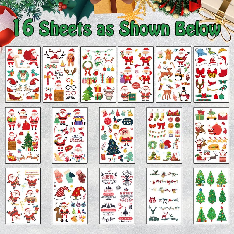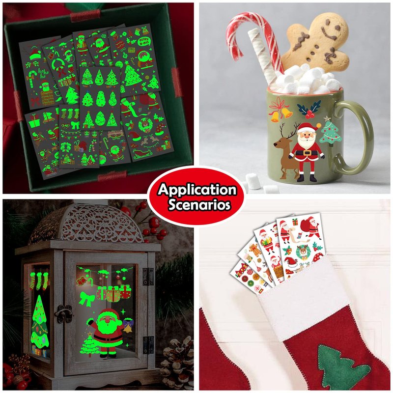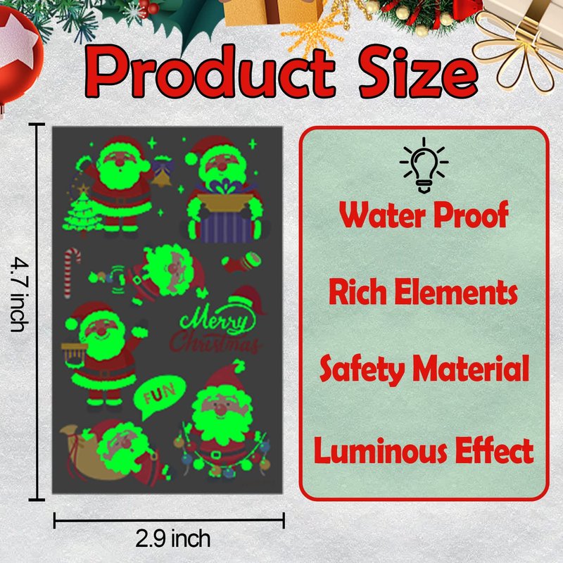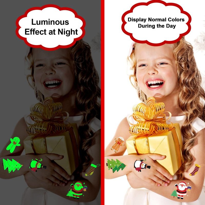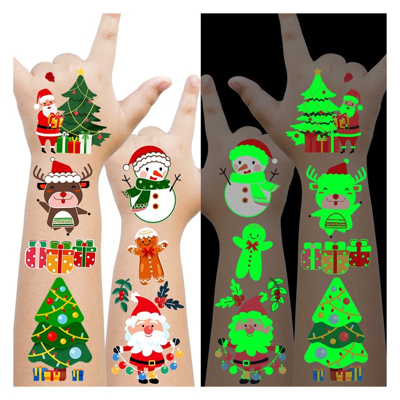 - Glow Stocking Stuffers for Kids: Christmas Temporary Tattoo Set - 16 sheets Luminous Temporary Tattoos for christmas decor, 200+ Styles Diverse and Cute Christmas Themed Elements, Glowing Decoration Christmas Tree, Santa Claus, Christmas Wreath, Christmas Stocking, Christmas Hat , elk, snowflake, etc.