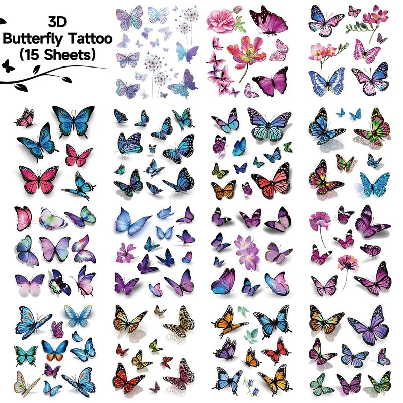 - 3D Butterfly Temporary Tattoos: Are you looking for the pretty butterfly tattoos for your body decorations? Use our 3D butterfly theme tattoos to decorate your body! Exquisite designs include various 3D butterfly elements and looks vivid.
