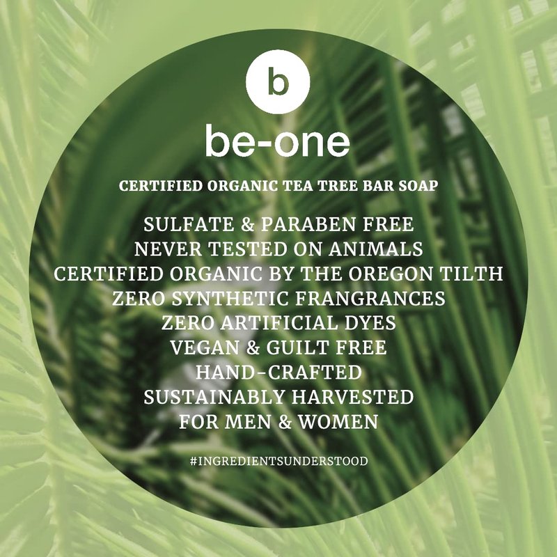 Certified Organic Tea Tree Bar Soap by Be-One - 2-Pack - 3.75 oz Bars - Vegan - Paraben & Sulfate Free - Sensitive Skin - Jock Itch - Acne - Eczema - All Natural - For Men & Women - MADE IN USA