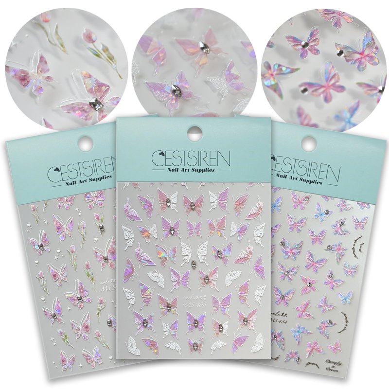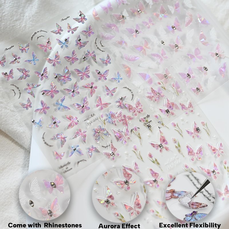 - 【Nail Stickers Set】: You will get 3 sheets of butterfly nail stickers in 3 different styles.All of the stickers come with rhinestones.Enhance your nail art creations with the included rhinestones, adding a touch of glam and sparkle to your designs for a truly eye-catching and luxurious look.