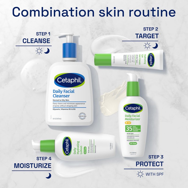 - CETAPHIL DAILY FACIAL CLEANSER: Reinforces the skin barrier, balances skin and minimizes the appearance of pores