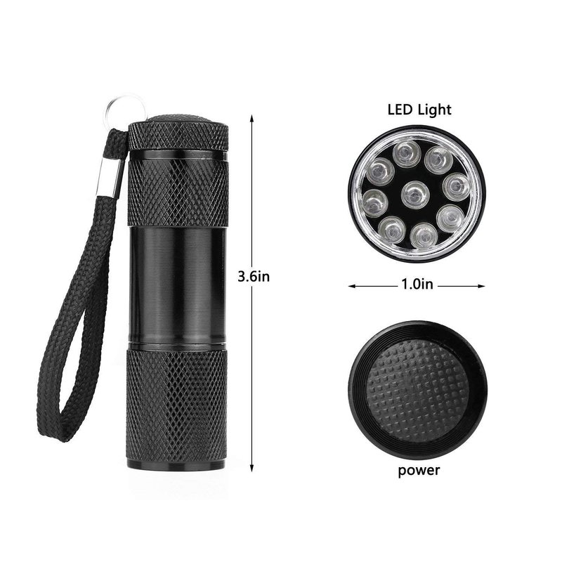 Package Included: 1 x 12 pack UV Blacklight 9 LED flashlight(no battery included)