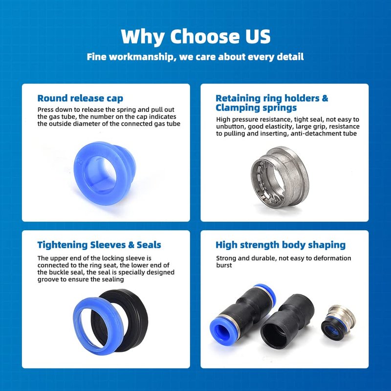4. Easy to connect the air tube, just press easily to pull out the air tube, easy to install, simple and dexterous.
