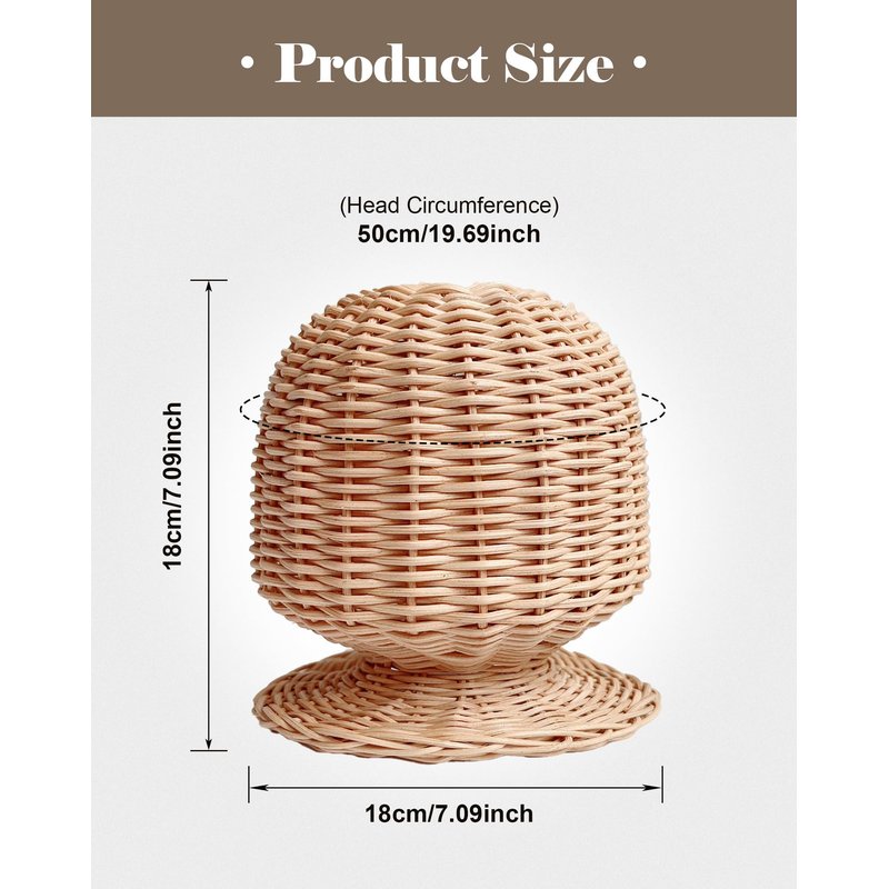 - Size Details: The Rattan Mannequin Head Stand is a beautifully handcrafted showcase for hats, caps, and wigs. Its compact size of 11" (H) x 7" (W) x 7" (L) makes it perfect for displaying fedoras, wedding hats, or decorative pieces, suitable for displaying in retail shops, salons, or at home