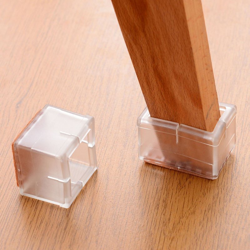 Chair Leg Caps, WarmHut 16pcs Transparent Clear Silicone Table Furniture Leg Feet Tips Covers Wood Floor Protectors, Felt Pads, Prevent Scratches, (Rectangle)
