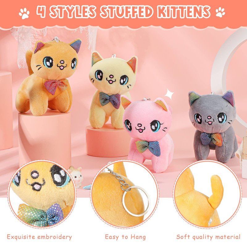 Chalyna 12 Pcs Cute Stuffed Animal Toy 4 Inch Mini Plush Mermaid Tiger Turtle Puppy Pig Alpaca Cat Ornaments Stuffed Doll Keychain Handbag Pendant for Birthday Party Favors DIY Home Decor(Cat Style)
