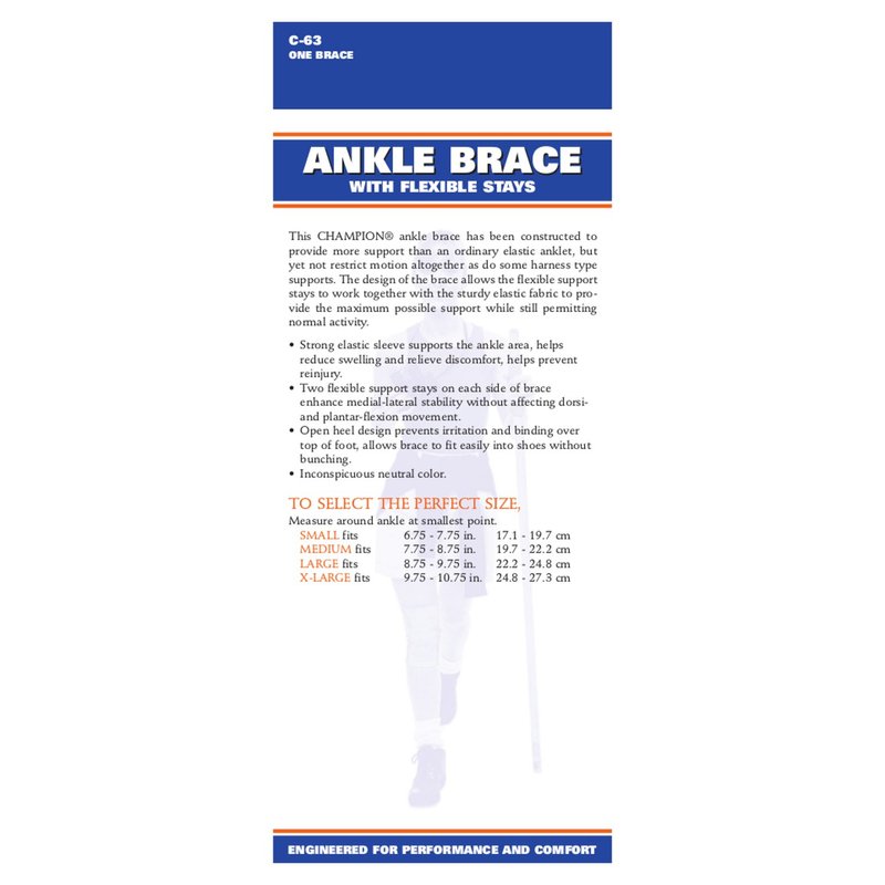 - Measure around the smallest part of the ankle. Available Sizes: Small (6.75-7.75 Inches), Medium (7.75-8.75 Inches), Large (8.75-9.75 Inches), and X-Large (9.75-10.75 Inches).