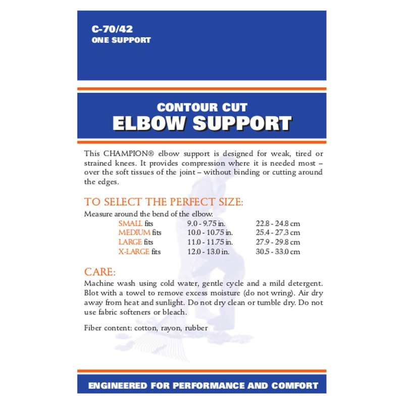 - Contour cut design for better support and wearing comfort. Can be worn on either the right or left elbow.