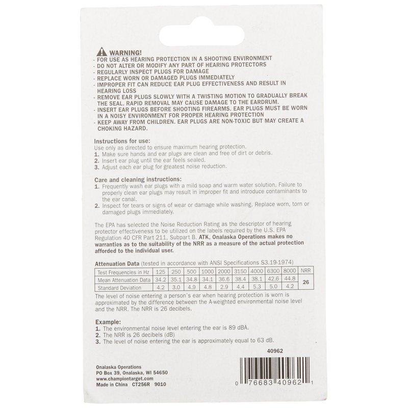 - The plugs have a noise reduction rating (NRR) of 26
