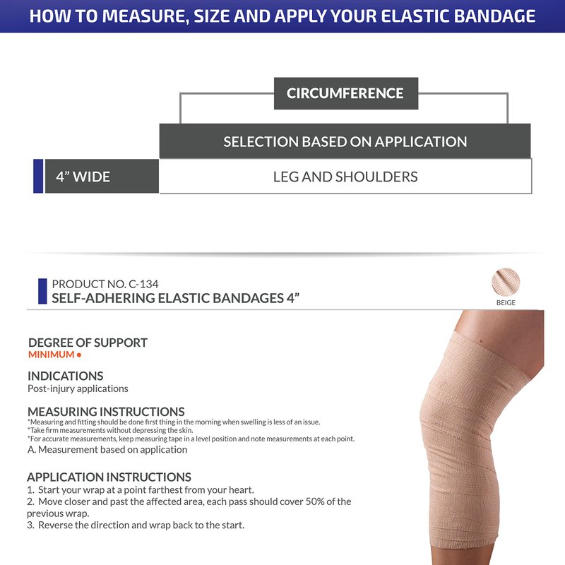CHAMPION Self-Adhering Elastic Bandage Adjustable Wrap, Beige, Universal, 4 Inch Wide