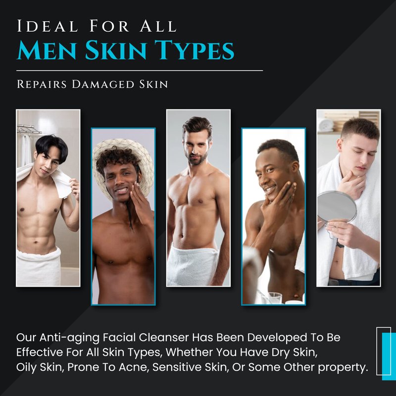 - DESIGNED FOR MEN SKIN CARE: We know choosing the right types of men's skin care products for your skin type isn't always as easy as it seems. This is why our anti-aging facial cleaner has been professionally developed for all skin types; Dry, Oily, Acne-Prone, Sensitive & Combination.