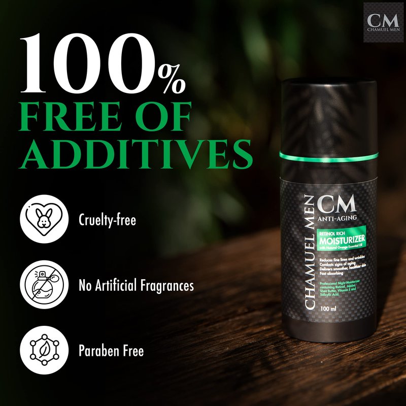 - 100% FREE OF ADDITIVES: Though some men's retinol night cream contain ingredients that have the potential to pose harm, our simple face moisturizer includes absolutely NO artificial fragrances, dyes or parabens.