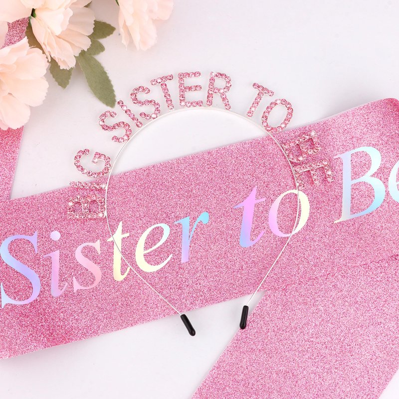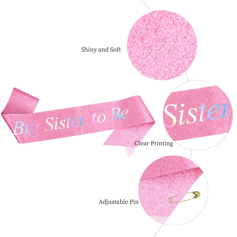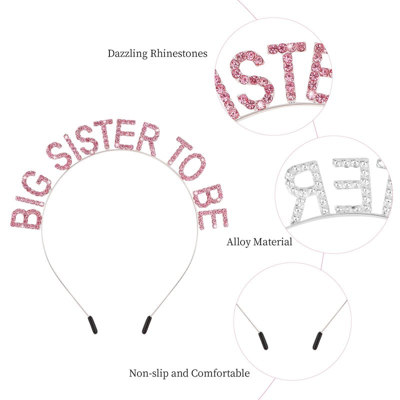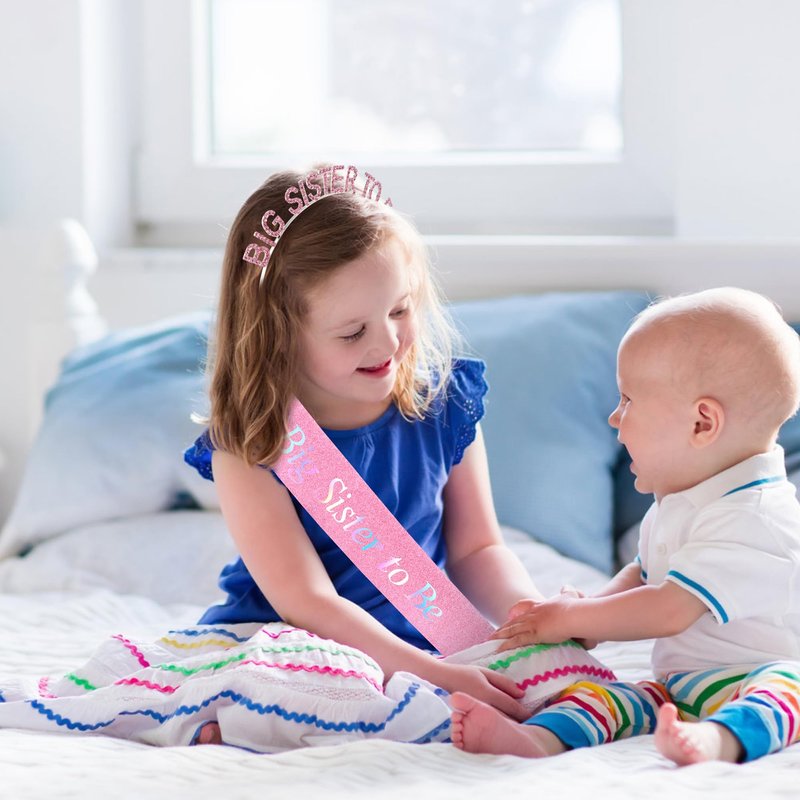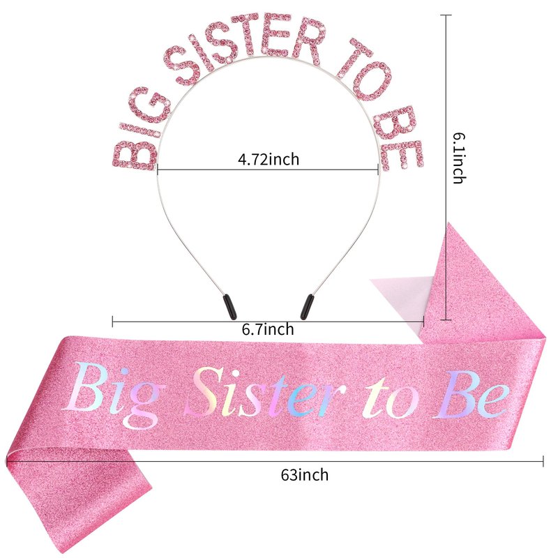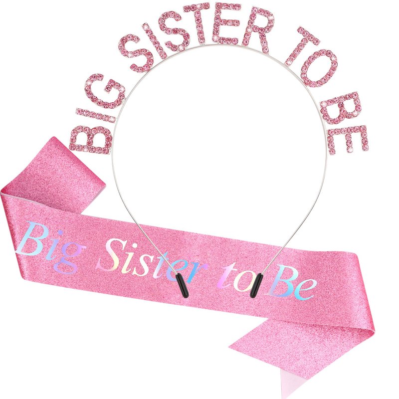 - Beautiful Design: This set includes a pink metal hair band with crystals and a glittery sash. The crystals on the hair band are sparkling, the sash has "Big Sister" as the theme, and the overall design is perfect for celebrating a little girl who is about to become a big sister.