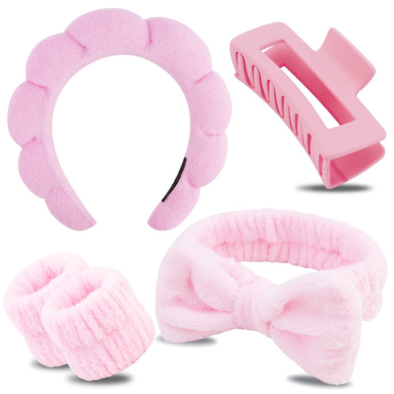 Chanaco Spa Headband, Skincare Headband, Makeup Headband, Headband for Washing Face, Wrist Bands for Washing Face, Face Wash Headband, Teen Girl Gifts Trendy Stuff, Pink Cute Hair Accessories