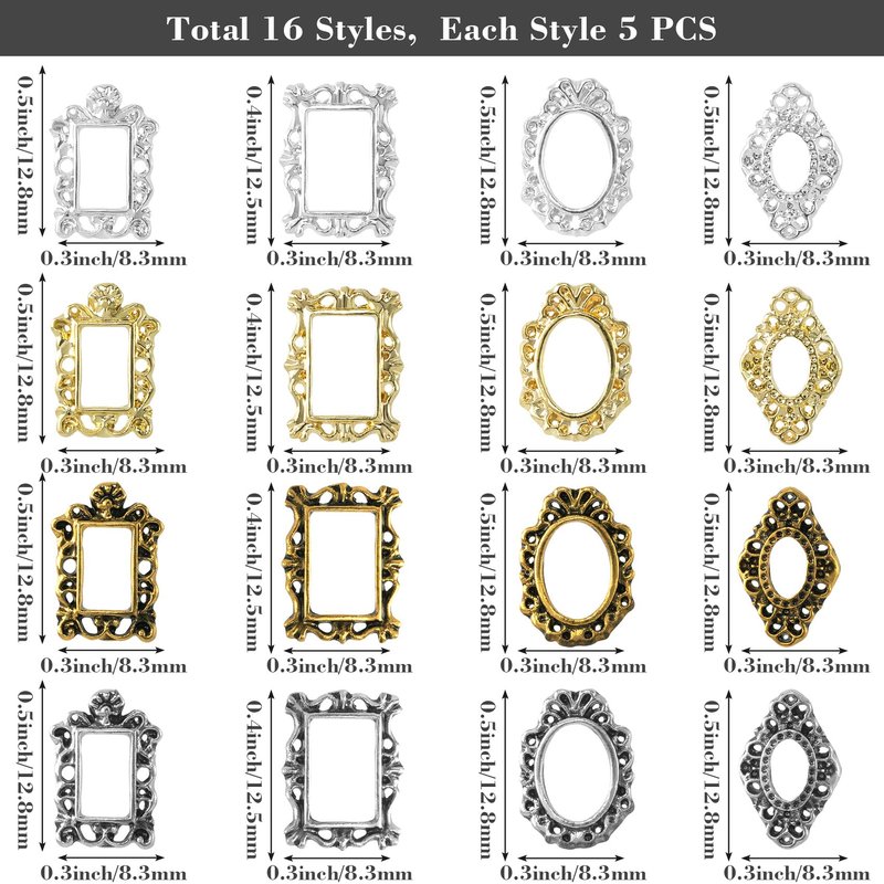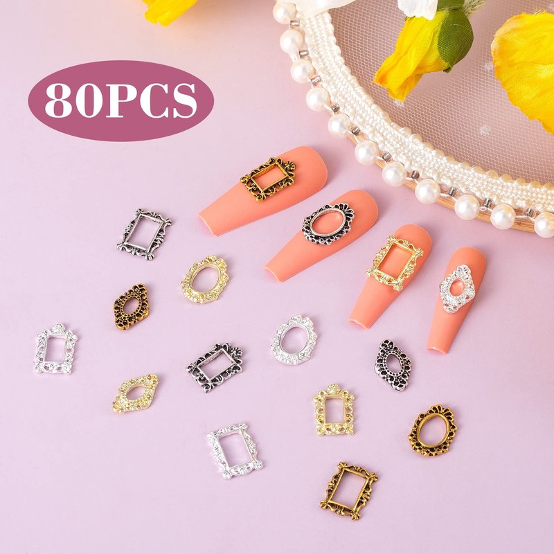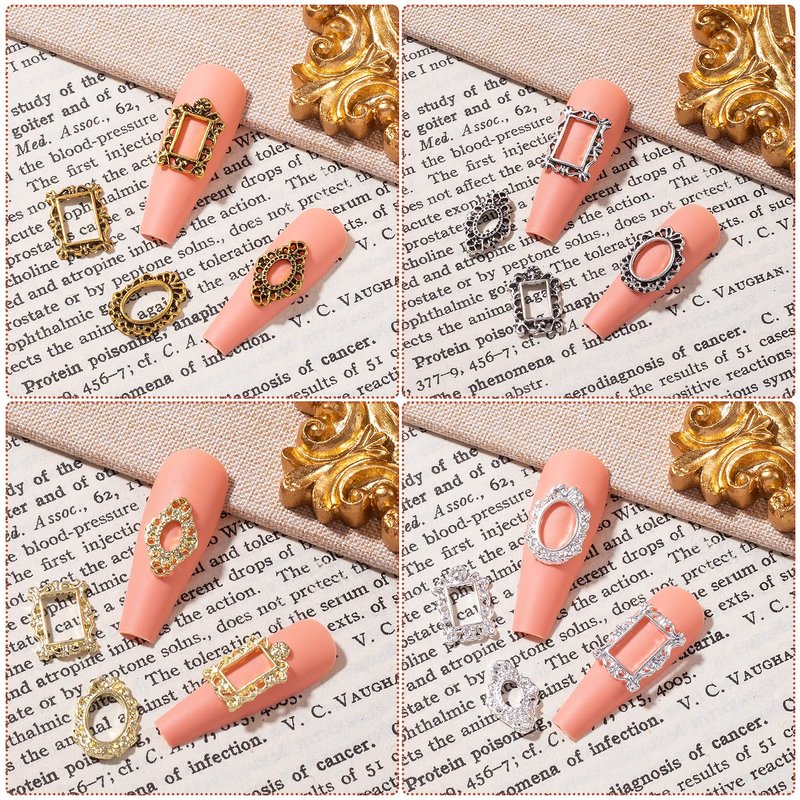 【Nail Frame Charms】: Unique retro metal frame design, exquisite gothic patterns on the frame, all make the nail art charms special and charming. You can set diamonds in the picture frame, draw patterns or portraits, etc.