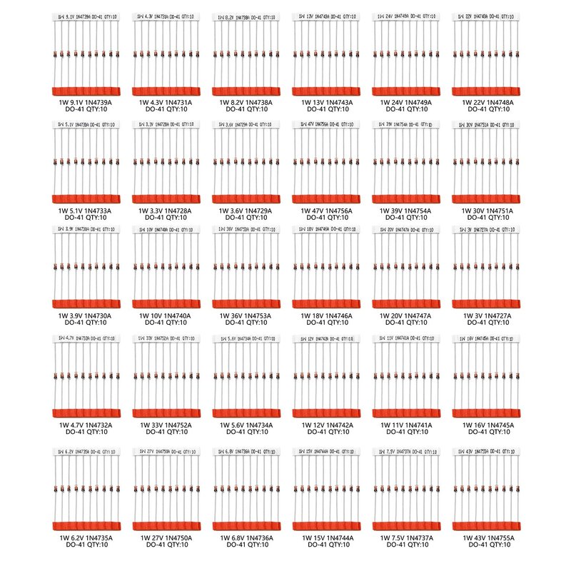 1W Zener Diode Assorted Kit (30 Values, each 10 pcs, total 300 pcs)