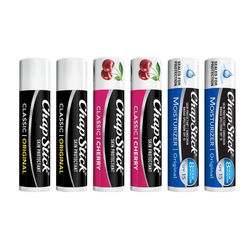 - Each Pack contains 6 Chapstick lip balms: 2 Classic Chapstick Original, 2 moisturizer original, & 2 Classic cherry.
