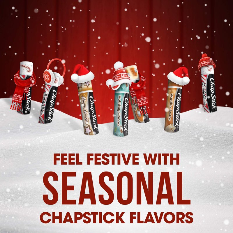 - CHAPSTICK FAN FAVORITE: Celebrate the holiday season all year with three flavored lip balms that combine function and fun: Candy Cane, Sugar Cookie, and Hot Chocolate.