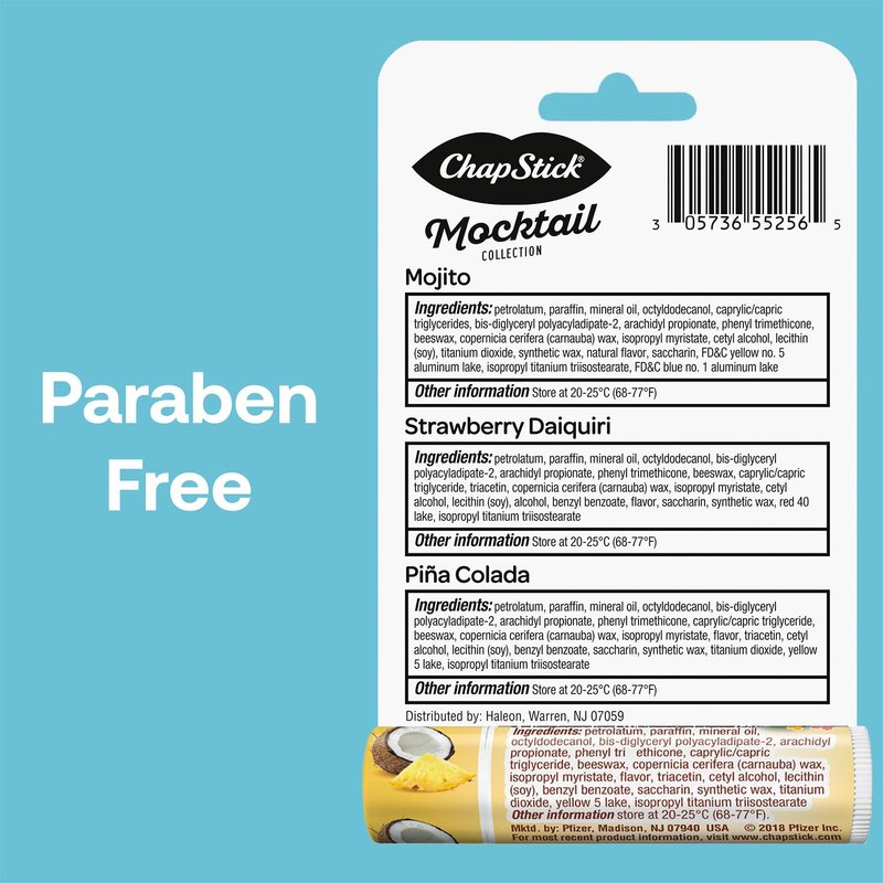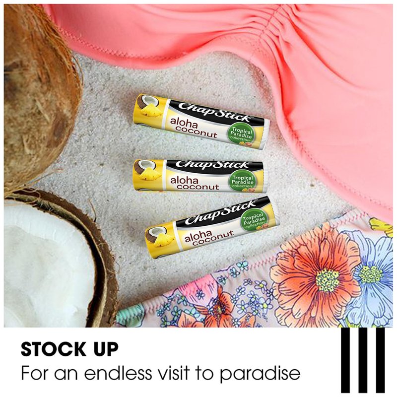 - CHAPSTICK FAN FAVORITES: Bliss out with our tantalizing Mocktail Collection (Strawberry Daiquiri, Mojito, and Pina Colada) plus two Aloha Coconut Lip Balms.