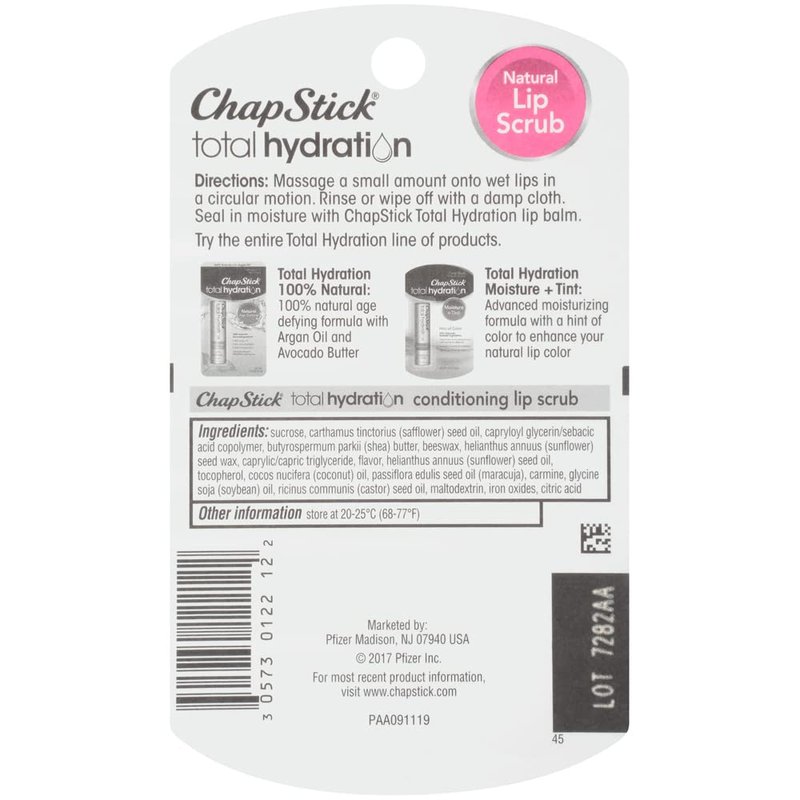 - Includes one (027 Ounce) Jar of ChapStick Total Hydration Conditioning Lip Scrub in Sugar Plum flavor