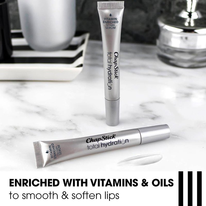 - One 0.21-ounce ChapStick Total Hydration Vitamin Enriched Lip Night Serum for Lip Care