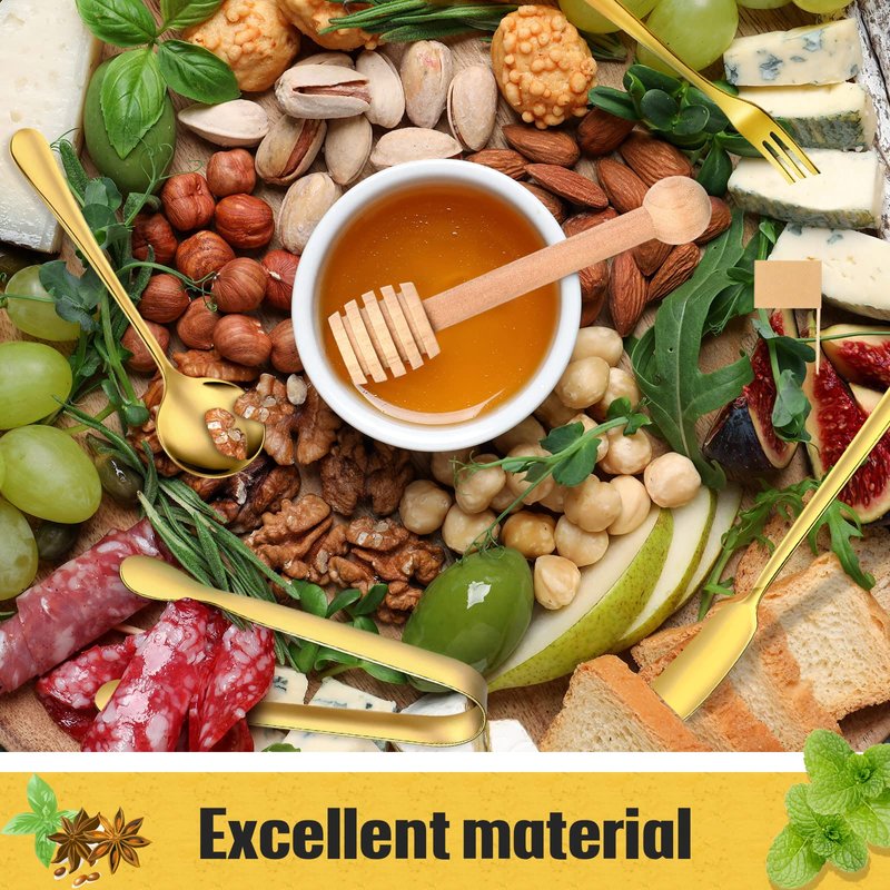 - Quality Material: charcuterie board accessories utensils are made of stainless steel, which will not be bent, broken by heat, very strong and long lasting, can be applied for many years; Honey dipper is made of safe wood material, which can be safely focused on food