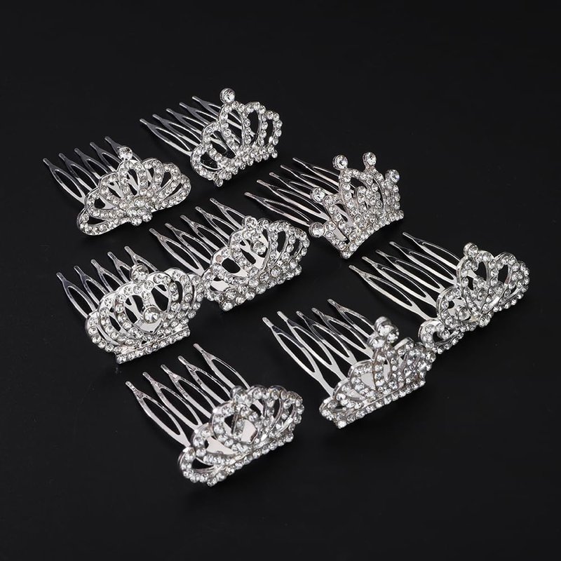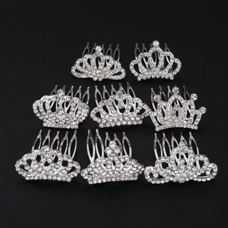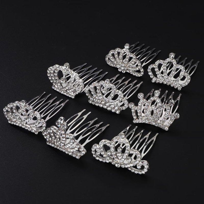 Chargances 8 PCS Mini Crystal Princess Headband Hair Comb Shiny Silver Rhinestone Headband with Comb Wedding Hair Dectoration for Little Girls Birthday Party