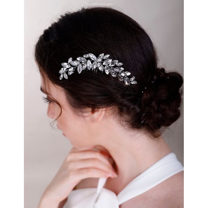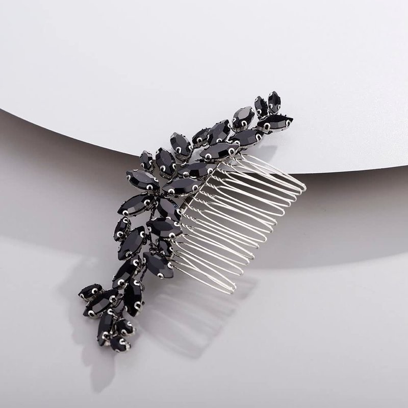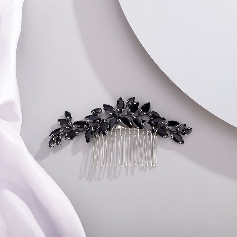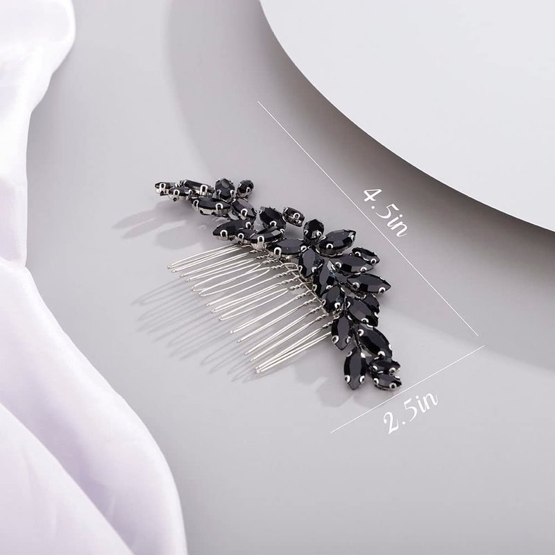 Chargances Bridal Crystal Hair Comb Black Wedding Rhinestone Hair Side Comb Fashion Handmade Hair Accessories for Bride Wedding Prom Flower Girl Headpieces (Black)