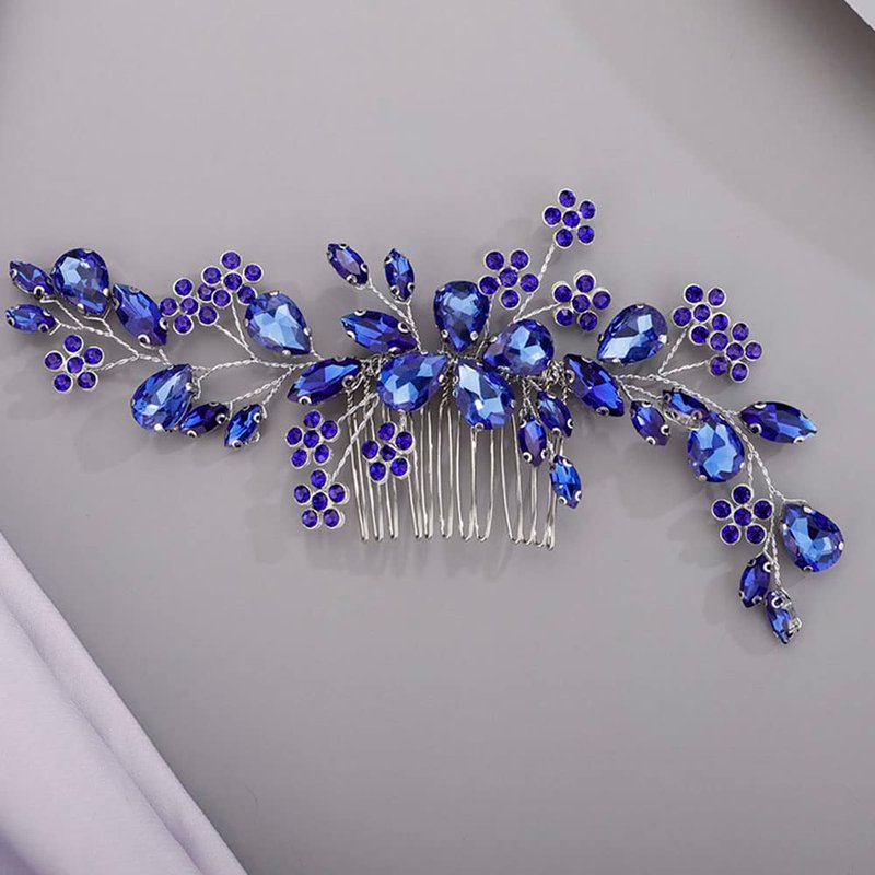 Chargances Bridal Wedding Crystal Hair Comb Handmade Flower Gemstone Hair Side Comb Blue Rhinestone Headpiece Bridal Hair Accessories for Wedding Prom Flower Girl (Blue)