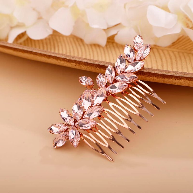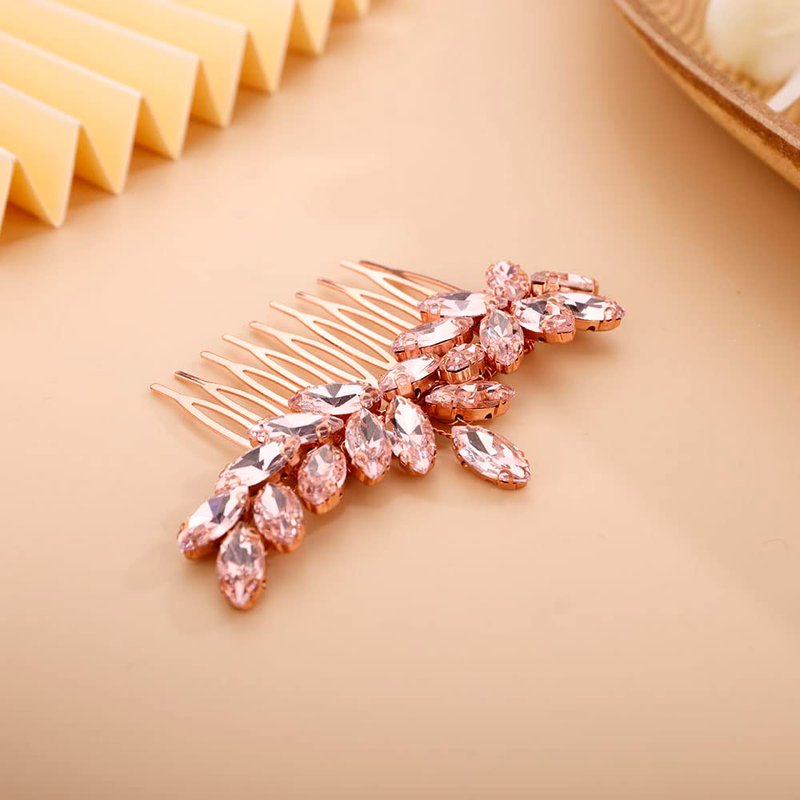 Chargances Bride Wedding Rhinestone Hair Comb Pink Crystal Hair Side Comb Fashion Handmade Headpiece Bridal Hair Accessories for Wedding Prom Flower Girl (Pink)