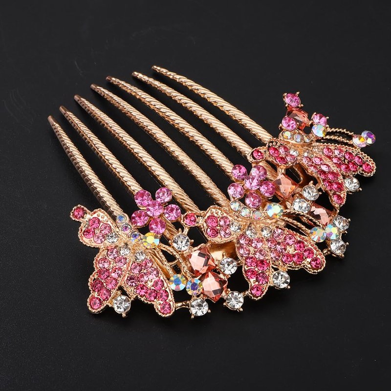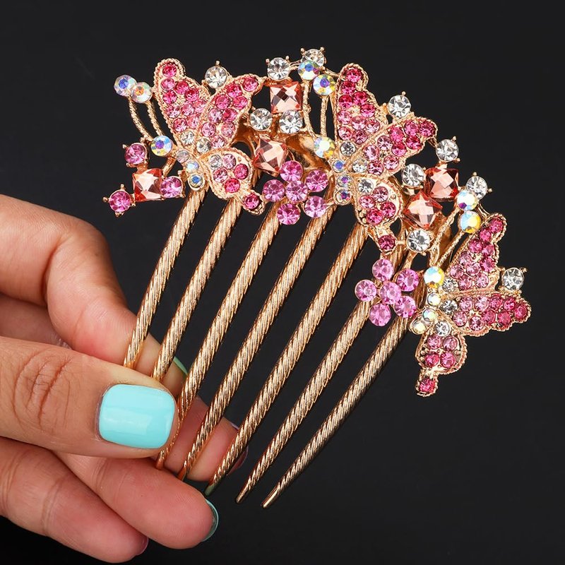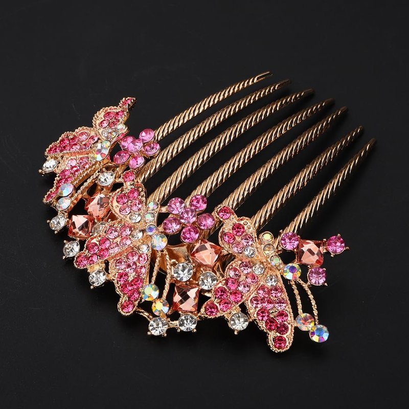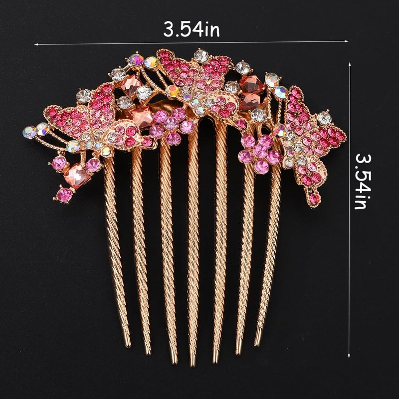 Chargances Butterfly Luxury Crystal Hair Comb Boho Shiny Flower Hair Comb Bridal Wedding Pink Rhinestone Hair Side Combs Hair Accessories Headpiece for Women and Girls (Pink)