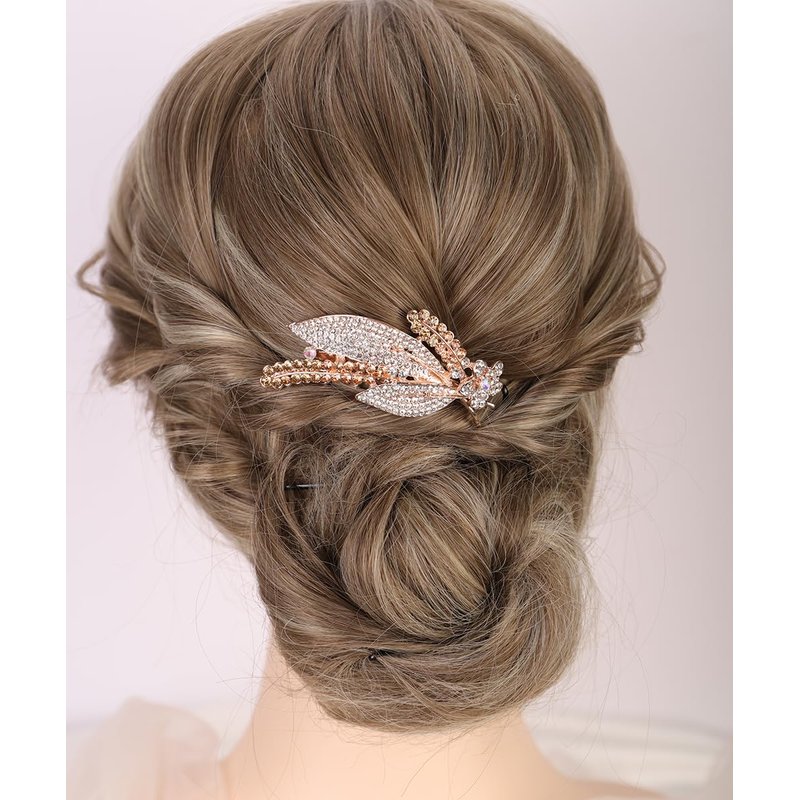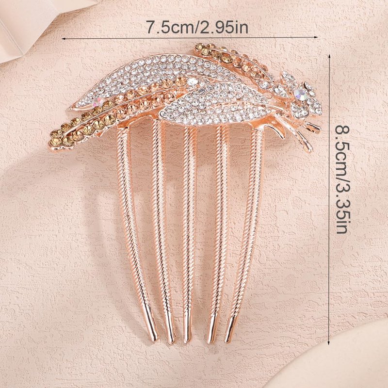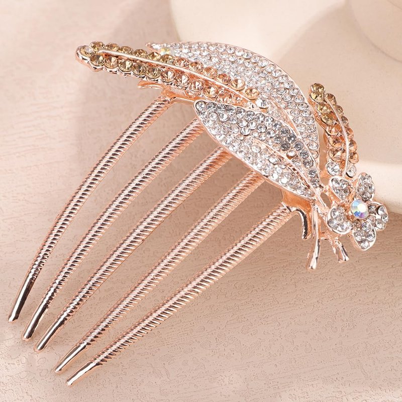 Chargances Dainty Crystal Feather Hair Comb Sparkly Rhinestone Inlaid Flower Hair Side Comb Long Teeth Hair Combs Wedding Bridal Hair Accessories for Women (Champagne)