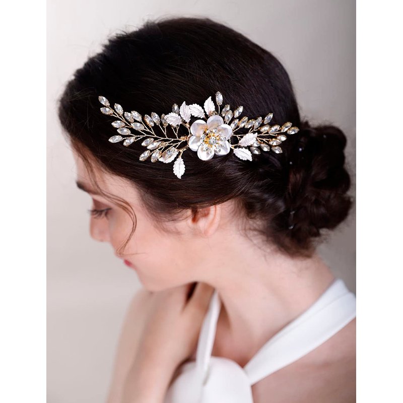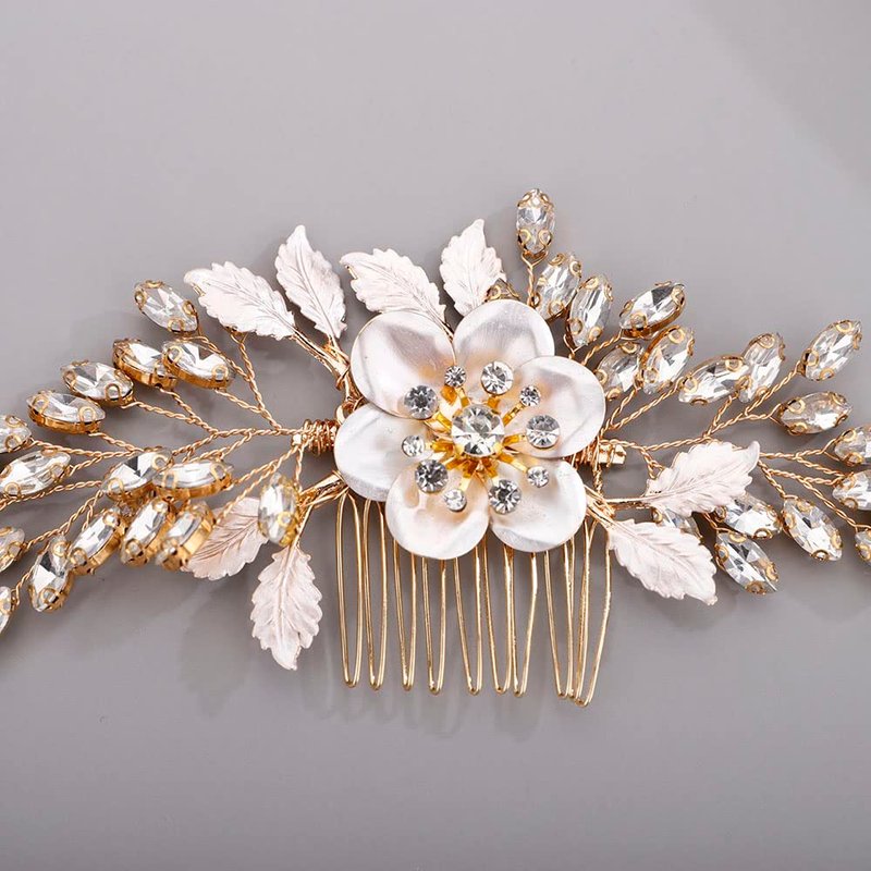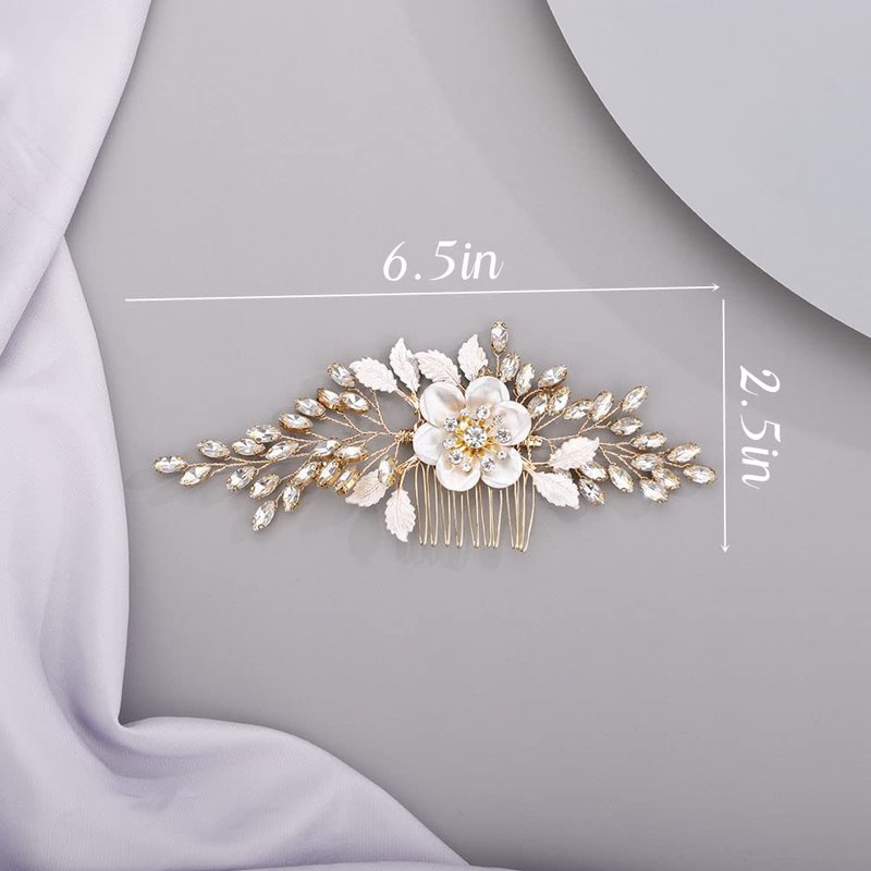 Chargances Gold Flower Crystal Hair Comb for Wedding Bridal Leaf Rhinestone Hair Side Comb Fashion Flower Headpieces Wedding Prom Flower Girl Hair Accessories for Women and Girls