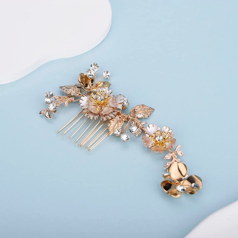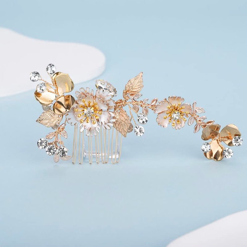 Chargances Hair Comb, Gold, 5in*2.5in, Rhinestone, Crystal, Handmade, for Bridal, Bridesmaids or Flower Girls in the Wedding, Festivals, Photography, Seaside Beach, and DIY Guarantee