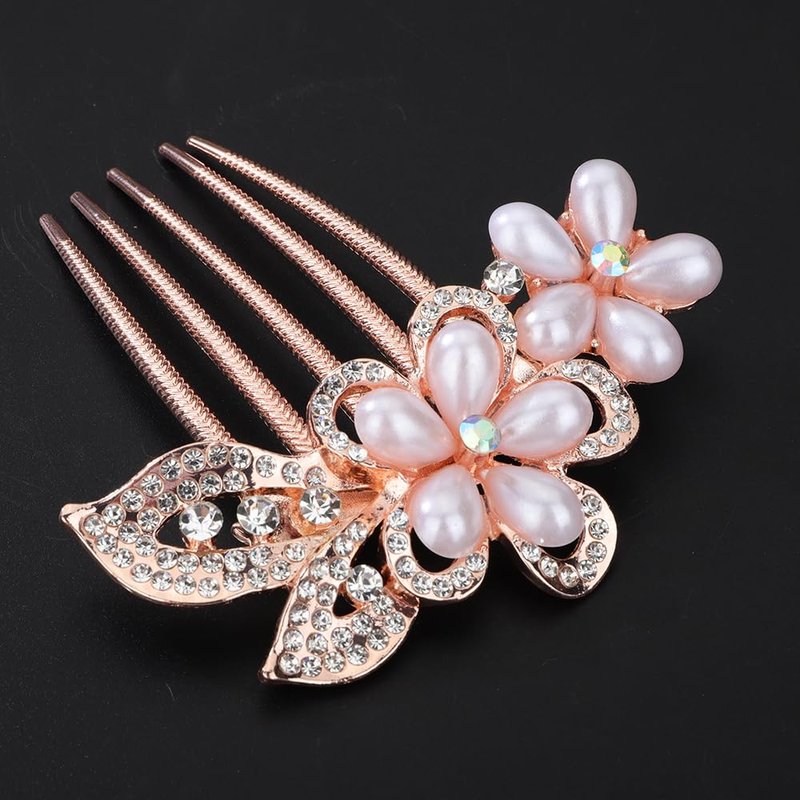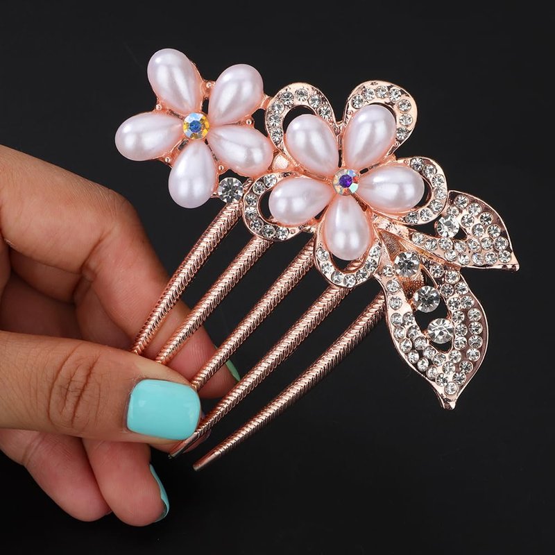 Chargances Pearl Bride Wedding Hair Comb Vintage Flower Rhinestone Hair Side Comb Bridal 1920s Headpiece Glitter Crystal Handmade Accessories for Women and Girls (Style 2)