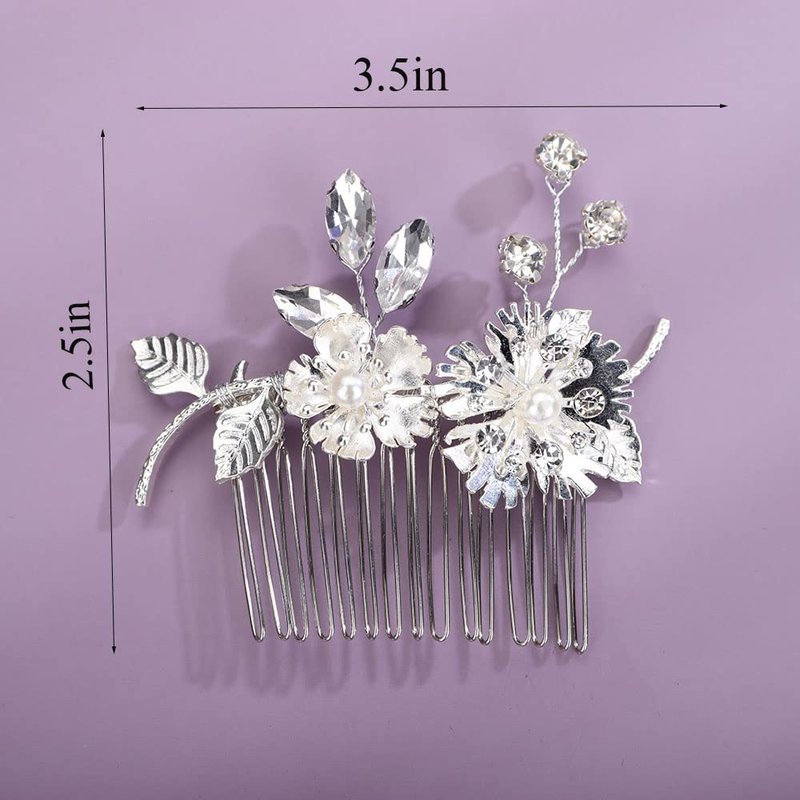 Chargances Silver Flower Crystal Hair Comb Wedding Leaf Pearl Hair Side Comb Fashion Rhinestone Handmade Headpiece Bridal Hair Accessories for Wedding Prom Flower Girl