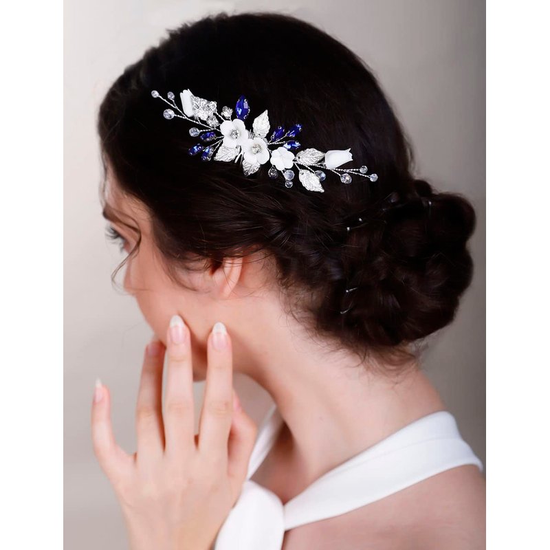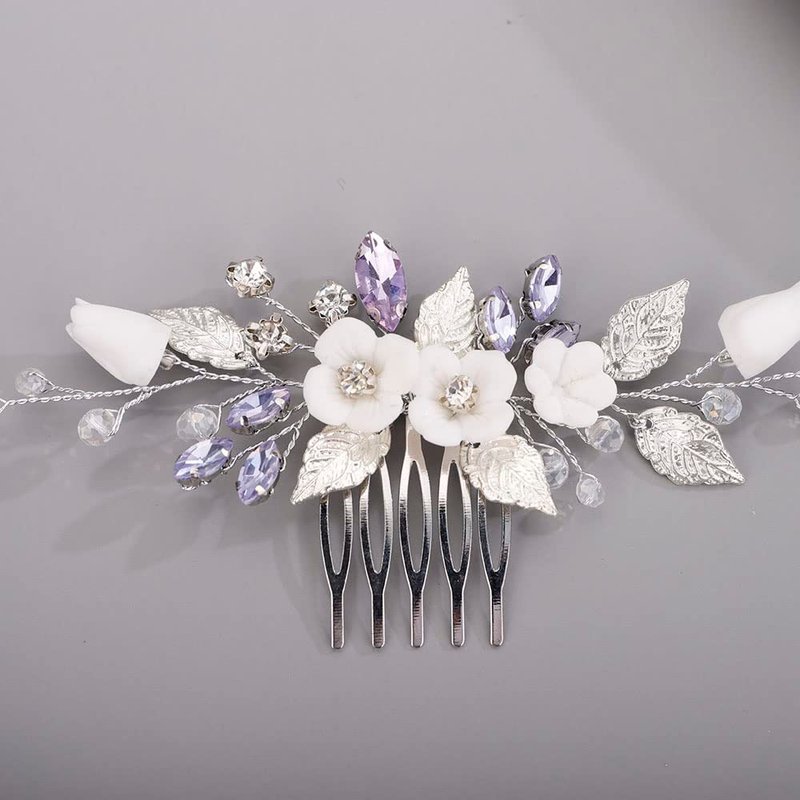 Chargances Wedding Purple Rhinestone Hair Comb Bridal White Flower Leaf Hair Side Comb Silver Crystal Handmade Headpiece Hair Accessories for Women and Girls (Lavender)