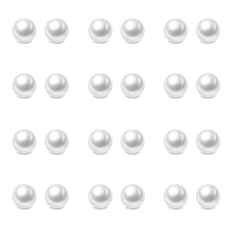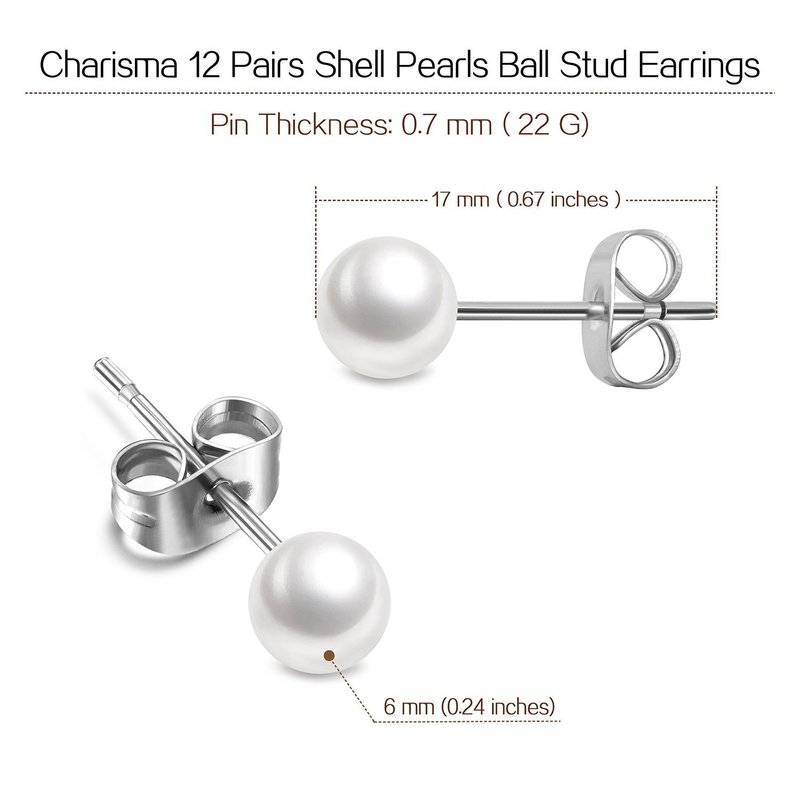 - SIZE, QUANTITY AND COLOUR: There are 12 pairs, with pearl diameter 6mm, with white pearl and sliver pin. Pearl earrings set include different sizes, you can pick the one that suits you. Also, it is perfect for those who have multiple piercing, you can wear more than one size/set at a time.