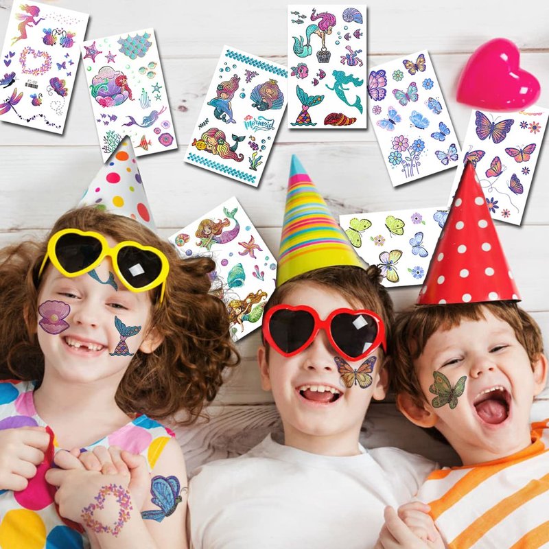 - ⚡Butterfly Mermaid Tattoos for All Occasions -- These awesome tattoos can be used in various occasions, such as mermaid birthday party supplies, party decorations, butterfly party favors, party bags, DIY decorations, summer holidays, pool and the beach or gift for kids and rewards. Kids temporary tattoos are the best party favors and goodie bags fillers ever for any kind of celebration!
