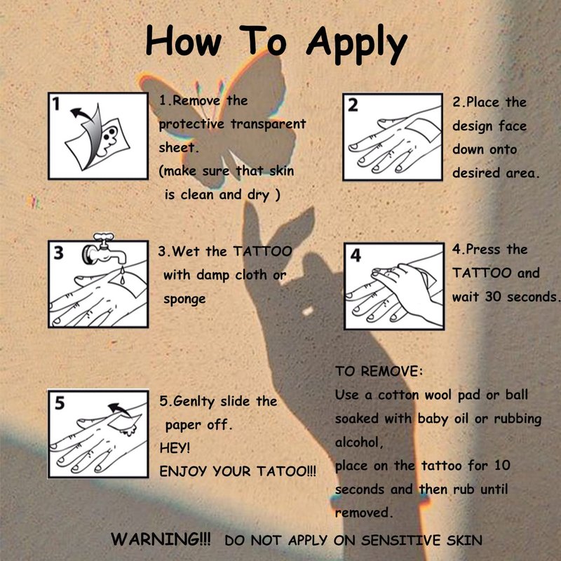 - ⚡Premium Quality,Waterproof and Sweat-resistant -- These unique tattoos typically last about 3-6 days.Can be removed with oil, makeup remover, or by scrubbing off. Safe to wear at the beach or in the shower or pool.