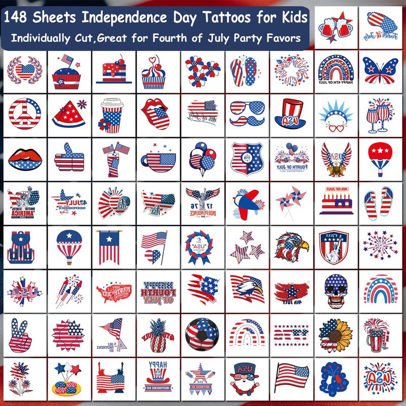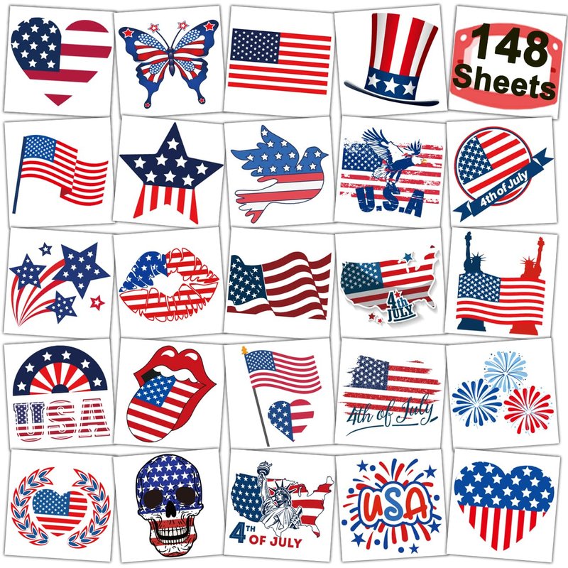 Package contents: There are 148 sheets of Fourth of July elements temporary tattoos