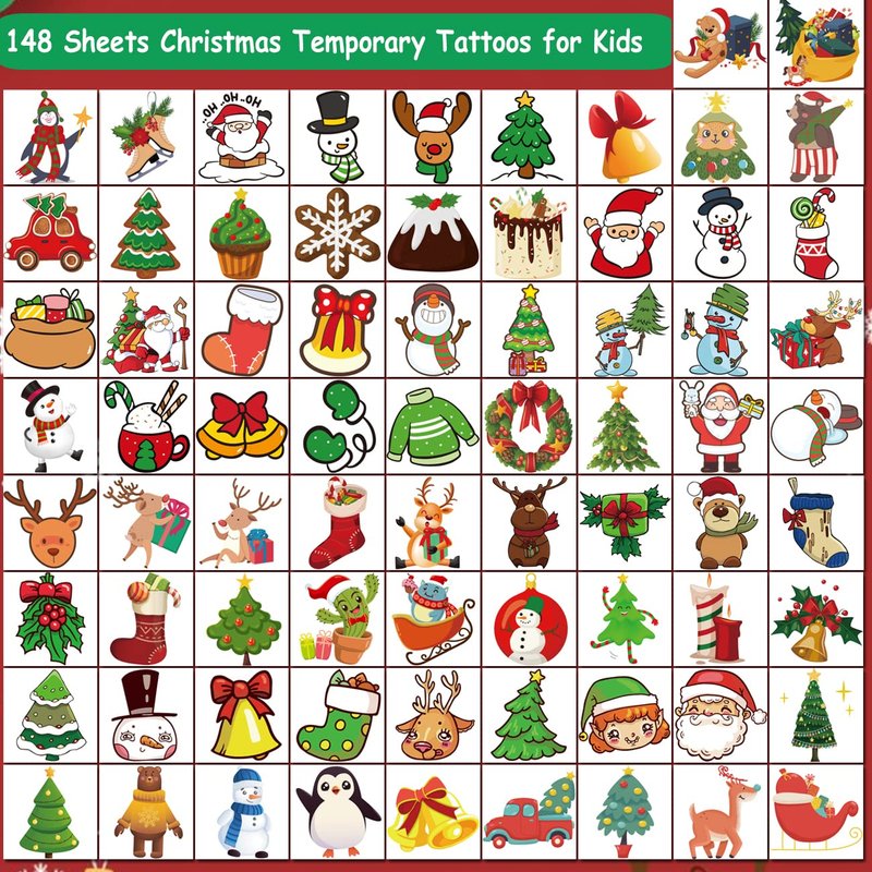 Package contents: There are 148 sheets of Christmas elements temporary tattoos