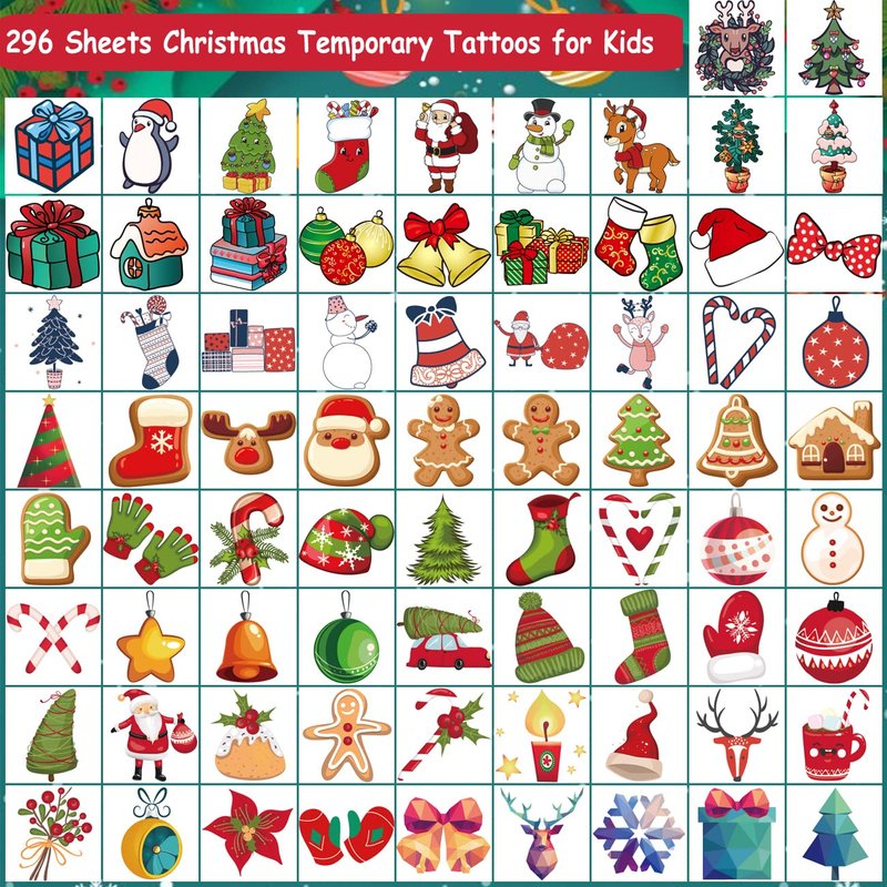 CHARLENT Christmas Temporary Tattoos for Kids - 296 PCS Christmas Individual Tattoos for Kids Christmas Xmas Party Favors, Stocking Stuffer, Christmas Eve Gift
