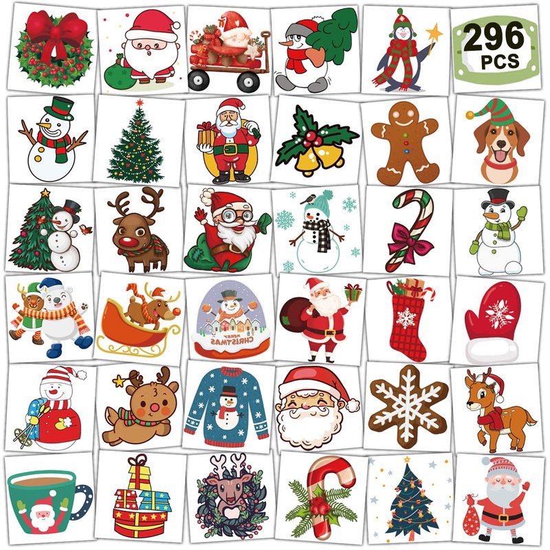 Package contents: There are 296 sheets of Christmas elements temporary tattoos