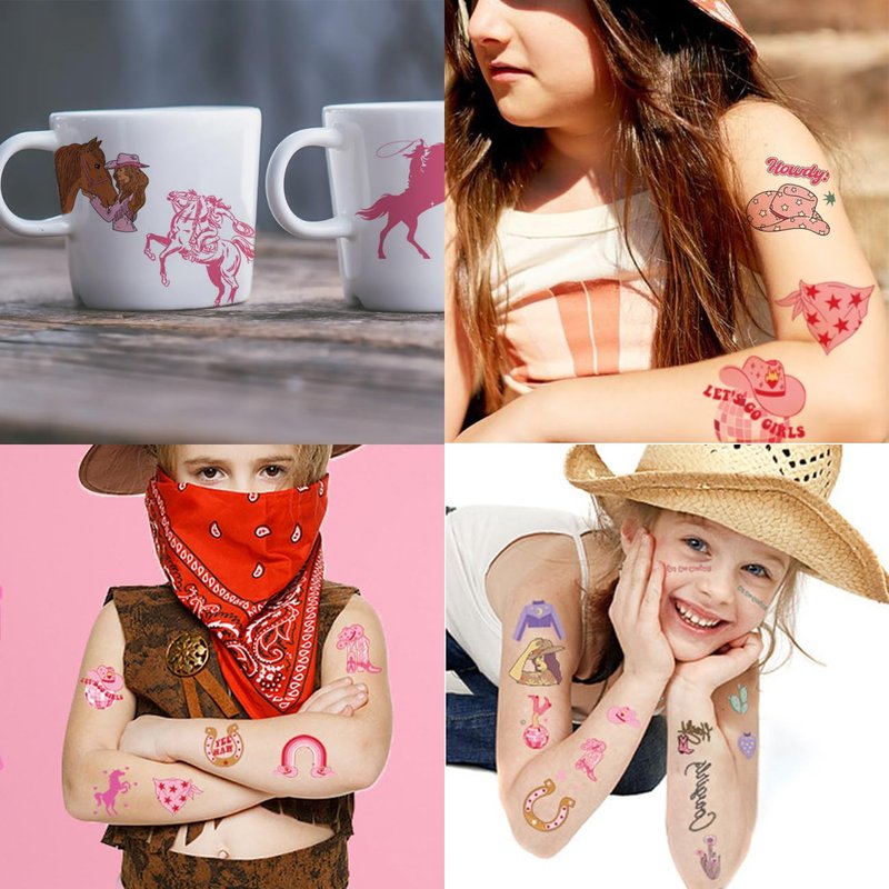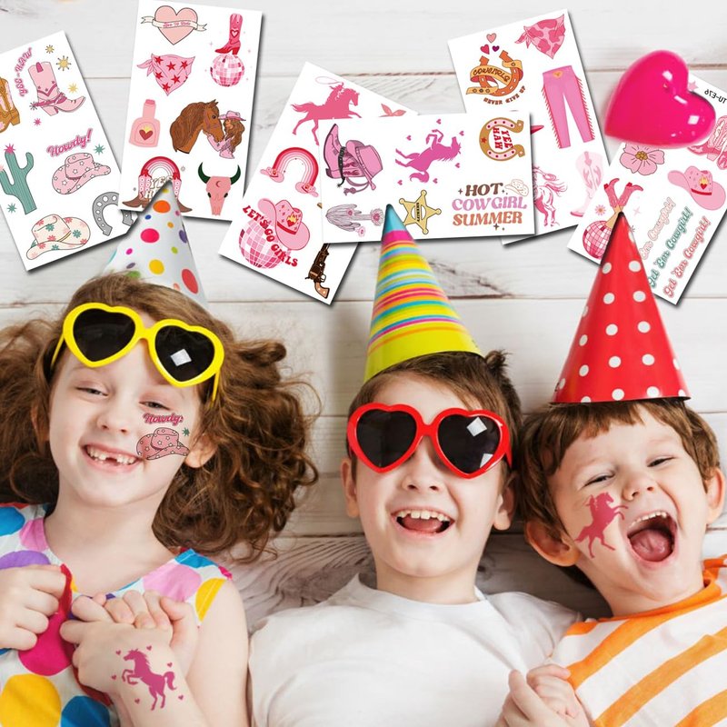 - ⚡Cowgirls Tattoos for All Occasions -- These awesome tattoos can be used in various occasions, such as birthday party supplies, party decorations, wild west party favors, party bags, DIY decorations, pool and the beach or gift for kids and rewards. Kids temporary tattoos are the best party favors and goodie bags fillers ever for any kind of celebration!