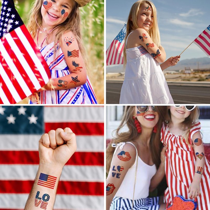 - ⚡Glitter Independence Day Tattoos for All Occasions -- These awesome tattoos can be used in various occasions, such as kids birthday party supplies, Fourth of July, Independence Day party favors, Veteran’s Day, Memorial Day, pool and the beach or gift for kids and rewards. Kids temporary tattoos are the best party favors and goodie bags fillers ever for any kind of celebration!